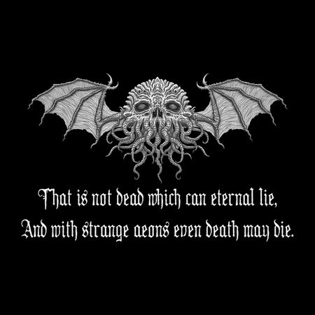 And with strange aeons even death may die. Though some men half-mad fools of cultists. That is not dead which can eternal lie.