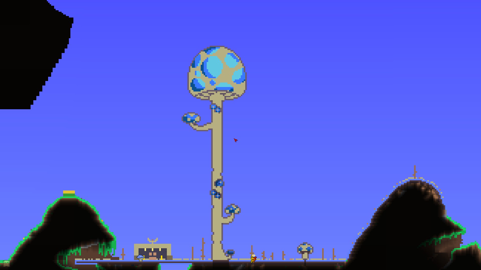 Heres the mushroom house. Terraria offers you a short survival course plus some useful building skills. Although in changelogs these have been referred to as Giant glowing mushrooms or simply Giant mushrooms in the source code they are referred to as Mushroom Trees.