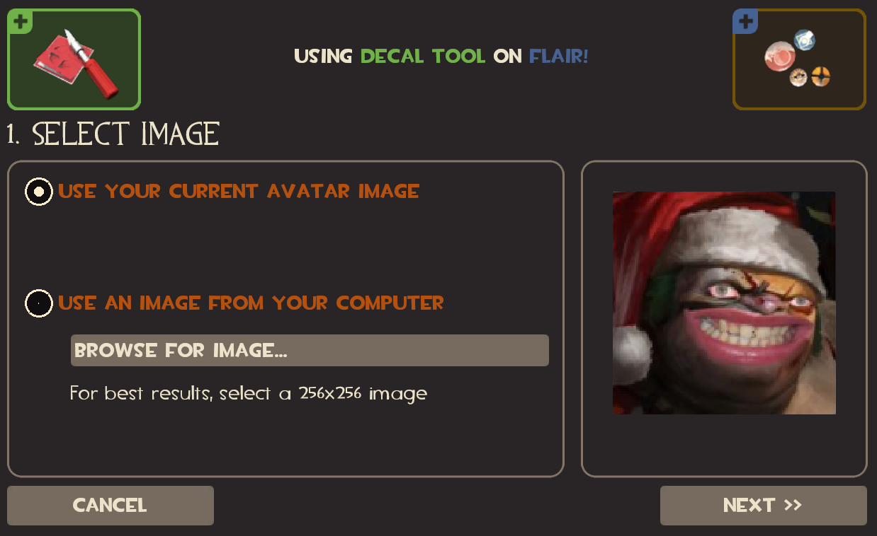 The decal tool is a tool that when used can apply a picture to the following items conscientious objector flair. Ive read a lot of guides on TF2 about how to use the decal tool but they assume you own and use Photoshop or they skip over specific details so I hope this guide covers every use of the decal tool. HUDs with streamer modes such as Flarepunch or FlawHUD to hide player names and pfps.